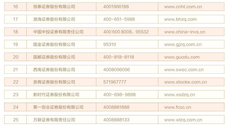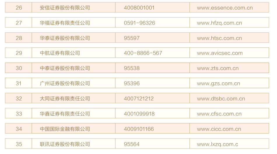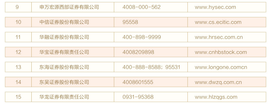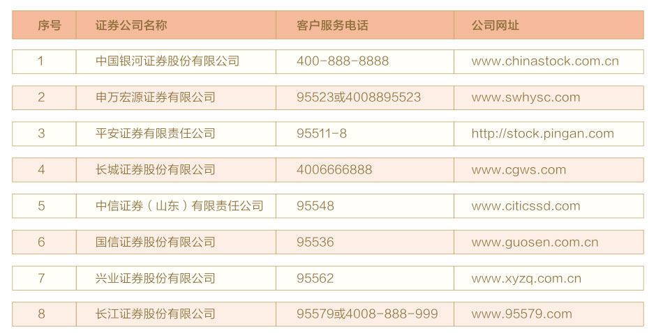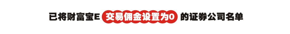 2、截至8月2日,我公司了解到以下证券公司已将财富宝E证券交易佣金设置为零。现将我公司了解的已将财富宝E证券交易佣金设置为零的证券公司名单提示如下(排序不分先后):